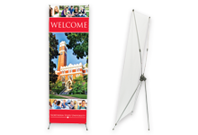 The super lightweight "X" display banner stand travels easily and stands tall where it is needed. Banners feature grommets in each corner for display, and carrying bags are included for easy transportation.